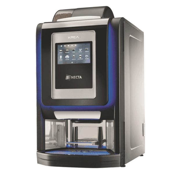Krea Touch ist das neue, elegante Modell der Necta HoReCa Familie. Ansprechendes Design, stimungsvolle Beleuchtung, Chromrahmen, schwarze Hochglanzoberfl ächen & unvergleichliche Leistung machen Krea Touch zur idealen Lösung für Ihre Kaffeepause. Der große Touch Screen und die benutzerfreundliche Oberfläche bieten viele Auswahlmöglichkeiten, flexible und maßgeschneiderte Rezepturen, kundenspezifische Brandings, Verkaufsaktionen und Videomanagement.